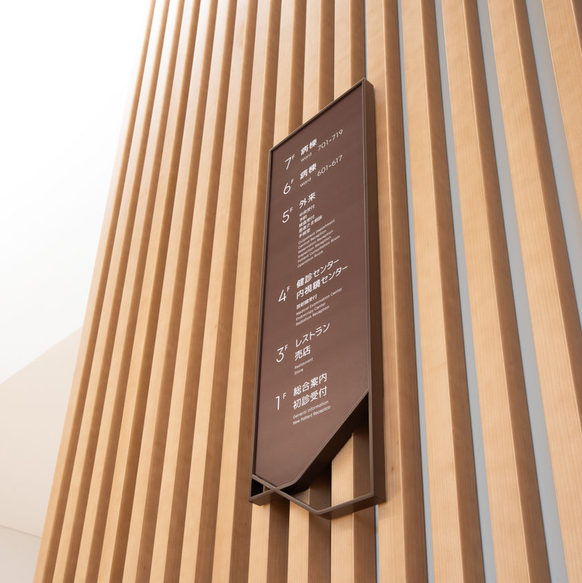 The sign concept represents the philosophy of Matsushima Hospital, with the ‘Meguru Line’ sign gently welcoming visitors.